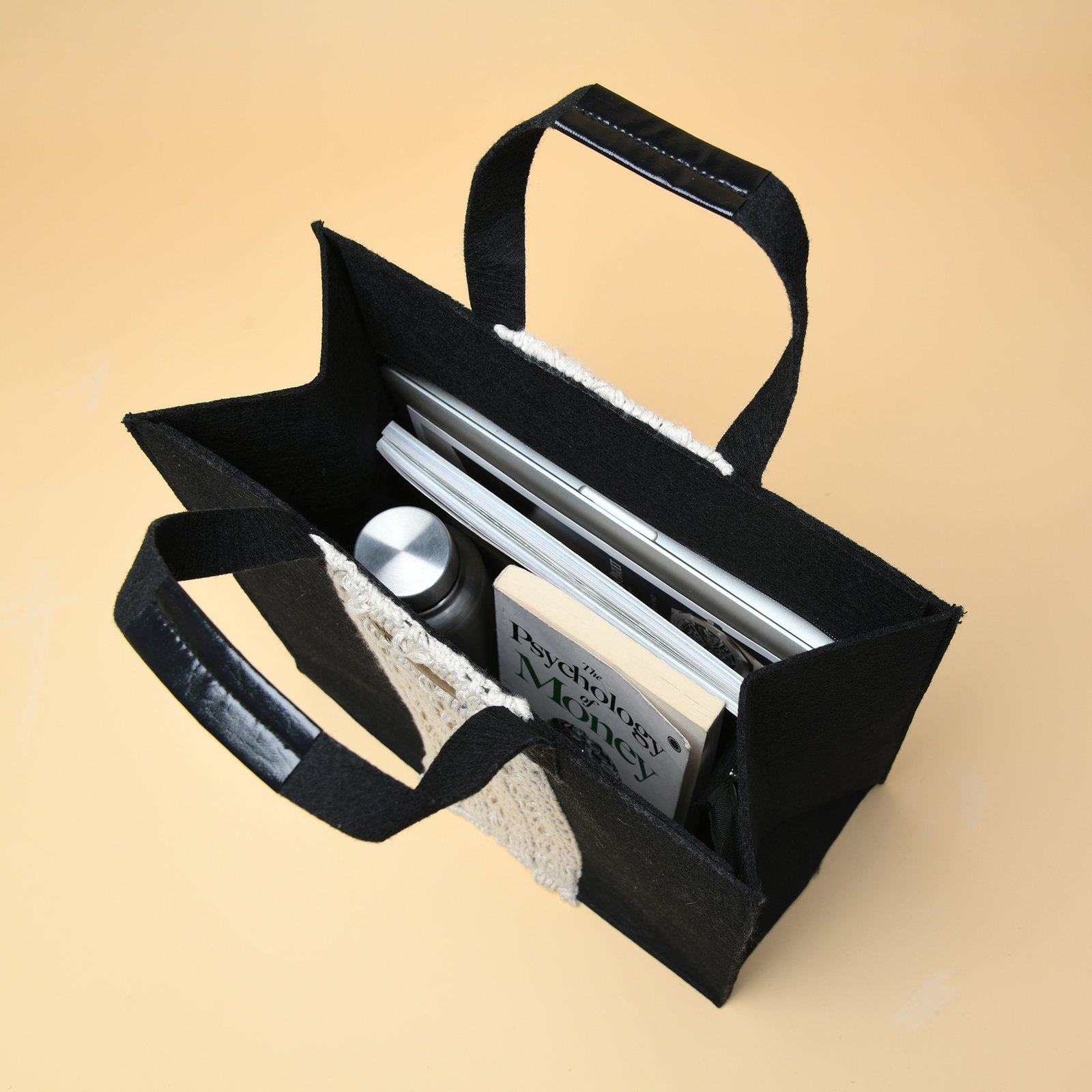 Color- black Width- 14 inch Length- 13 inch Side- 7 inch Patch size- 5/13 inch Handle distance- 6 inch